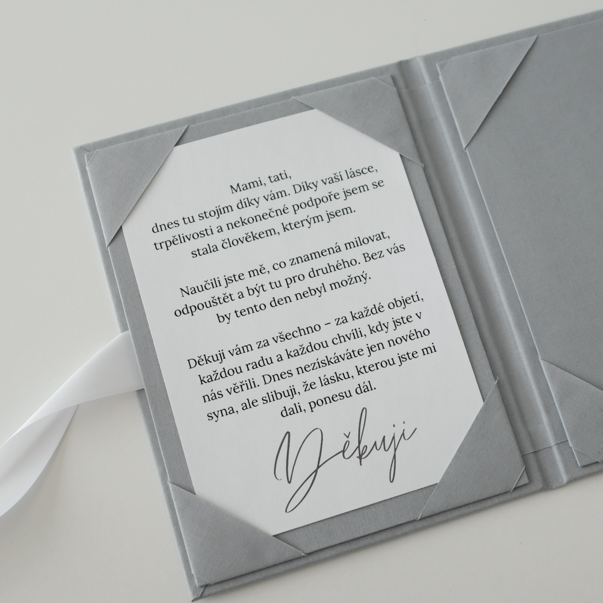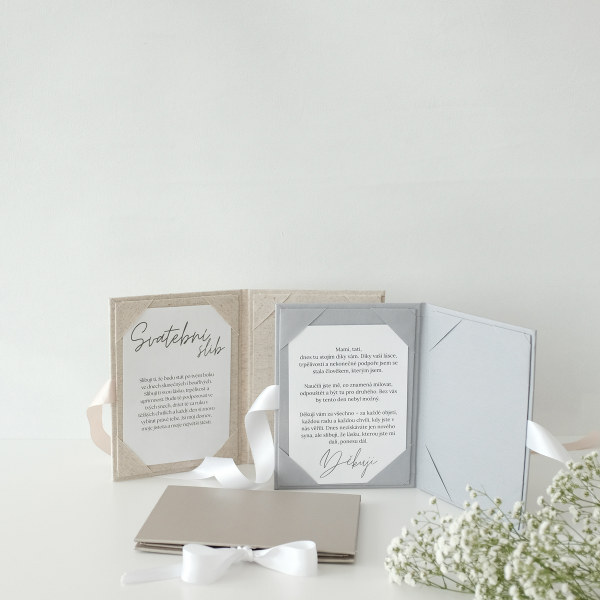 Svatební sliby patří k nejintimnějším okamžikům celého dne. Tyto desky jim dávají podobu, která odpovídá jejich významu – elegantní, čistou a nadčasovou. Při obřadu držíte v rukou něco, co má váhu nejen vizuálně, ale i emočně.
